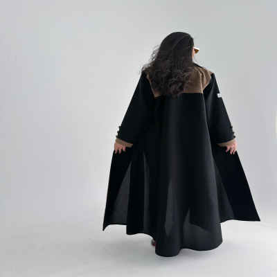 عبايه بليزر كتان مع تدخيلات انيقه من الجوخ على الاطراف تعتمدها المرأه الانيقه والعمليه